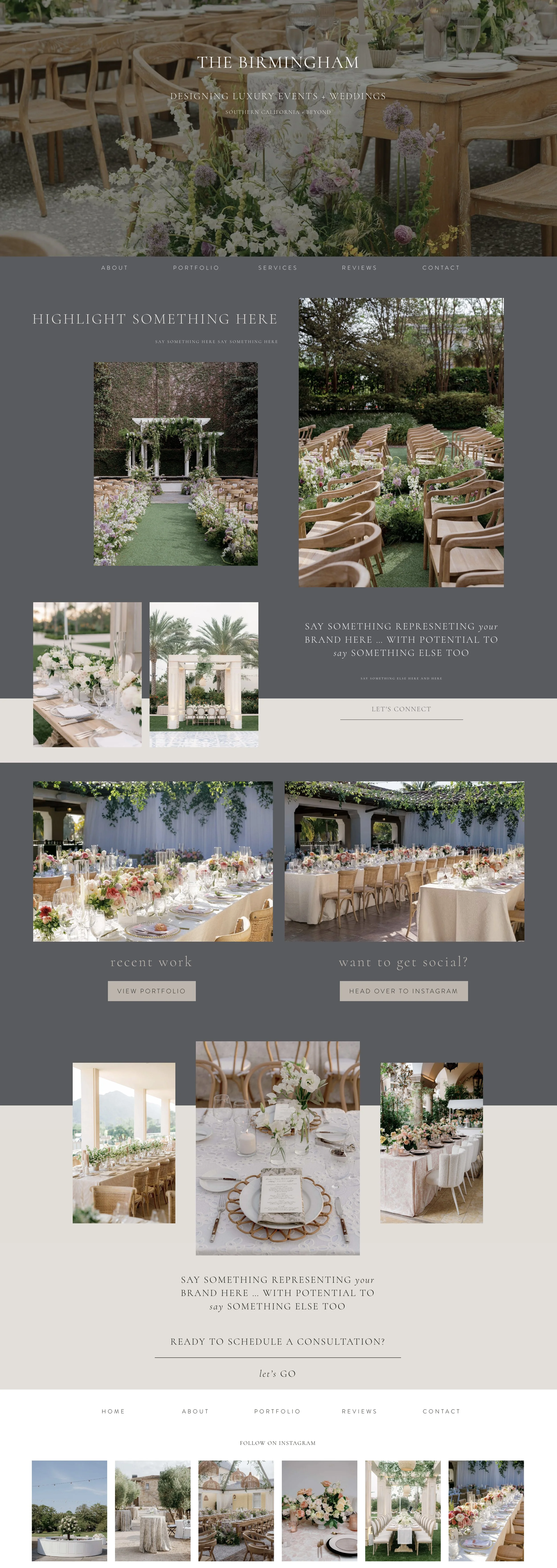 THE BIRMINGHAMBelow is a home page mockup of what The Birmingham looks like. Fonts, accent colors, photos will all be replaced with your branding and work. Where it says ‘THE BIRMINGHAM’ is where your logo will go.